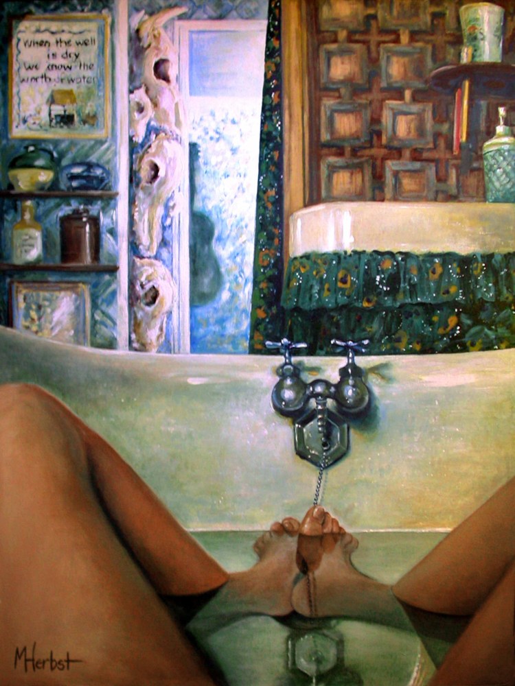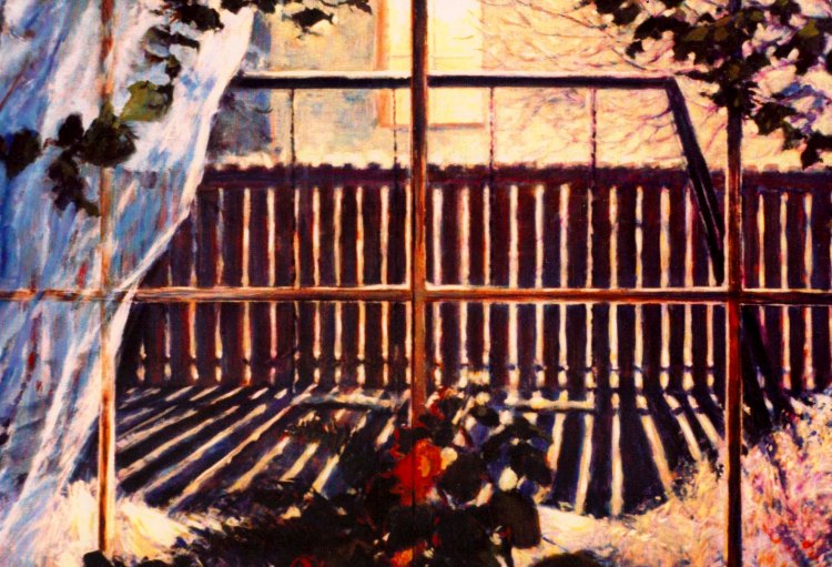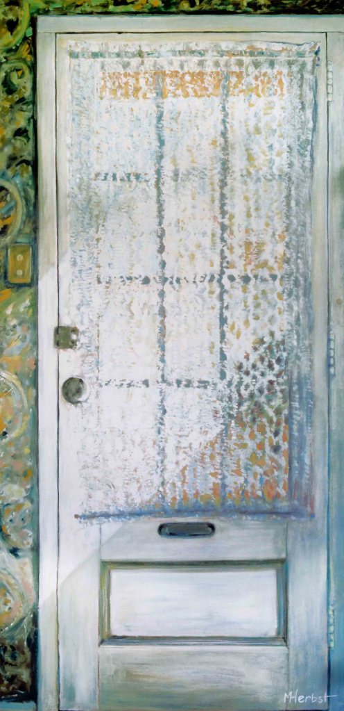 There is something about lace that reminds one of bygone days. The white door with its curtain of lace, the abandoned motel with tattered lace in the window, the bathroom with its lacy patterns of light. My old sampler reads: “When the well is dry we know the worth of water.” The bleached animal skulls speak to the passage of time. Lace is about longing for what has been lost … youth, love, a time of life that is now out of reach.
