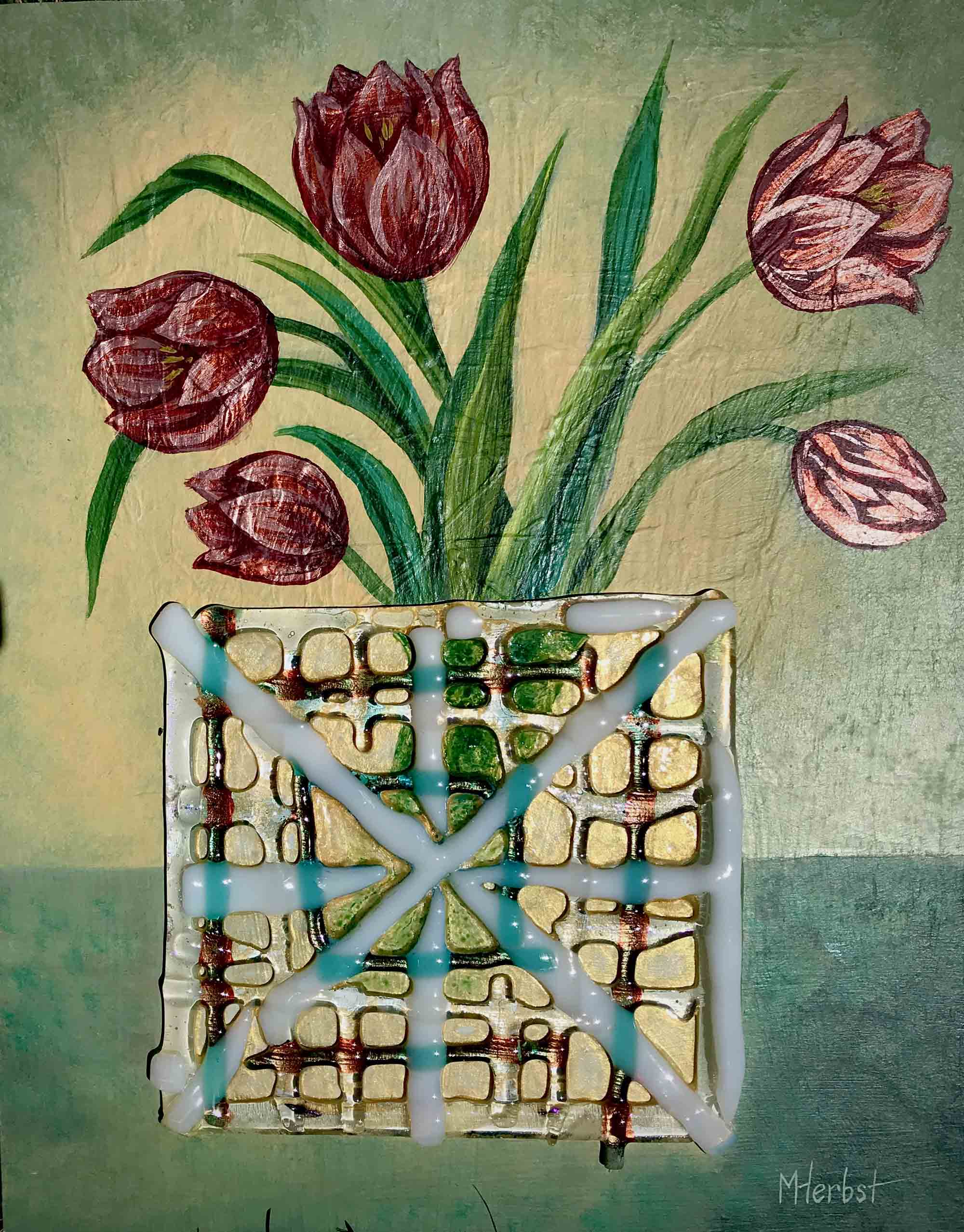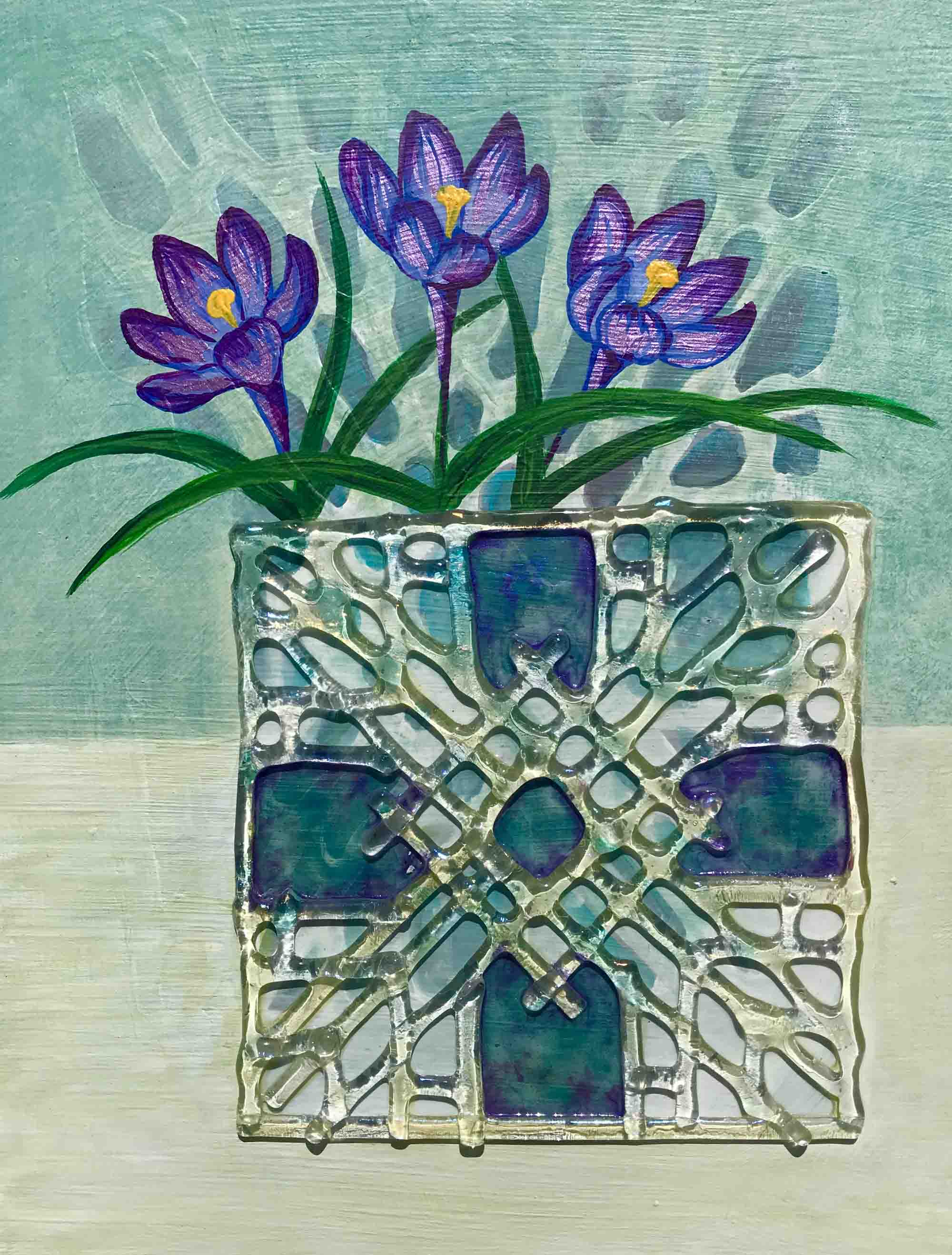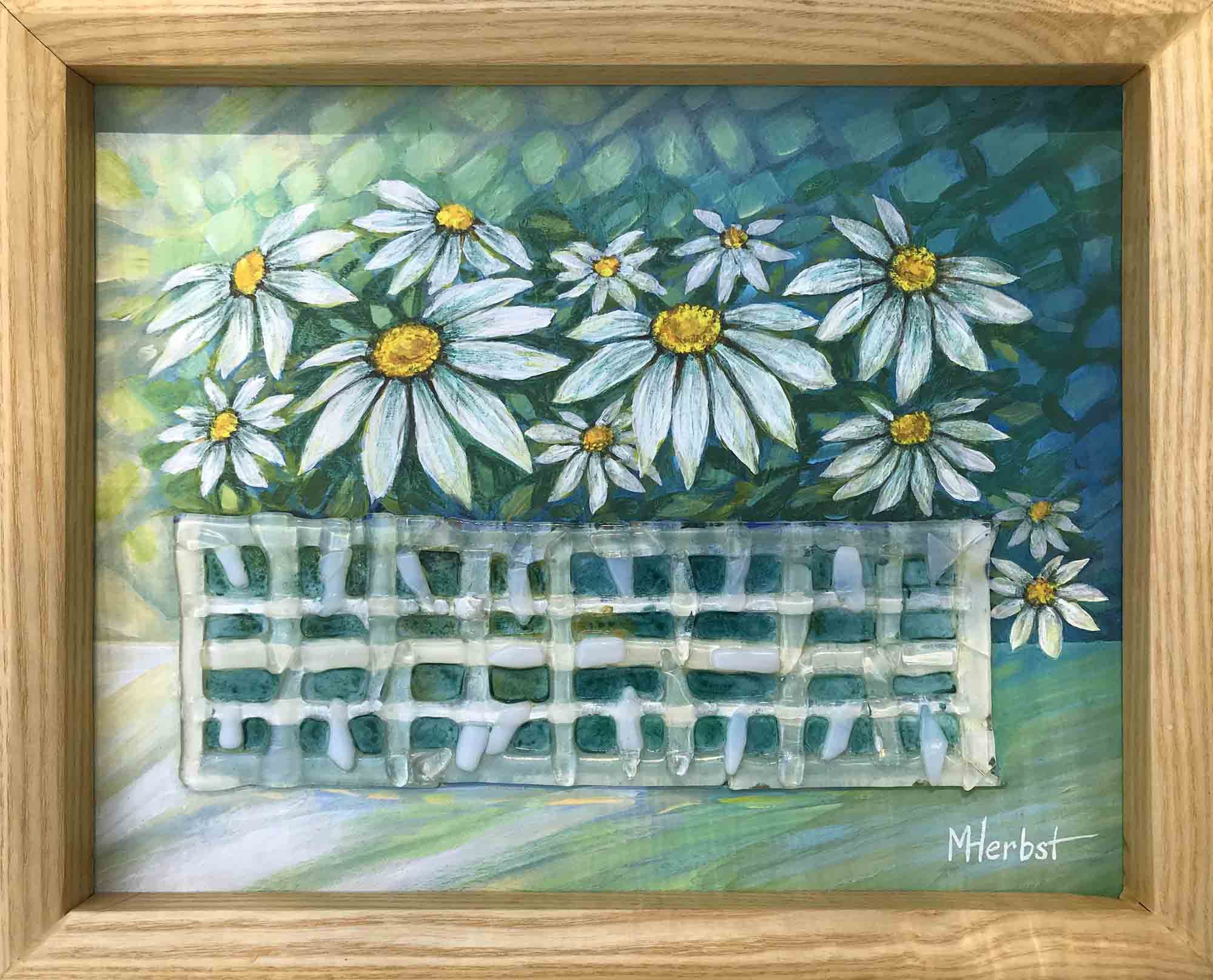 Fused glass is an ancient and beautiful art form with many applications. The technique involves melting together multiple pieces of glass in a kiln at a high temperature. The art of fused glass offers an exciting opportunity to experiment and explore mixed media combinations of glass and acrylic painting.